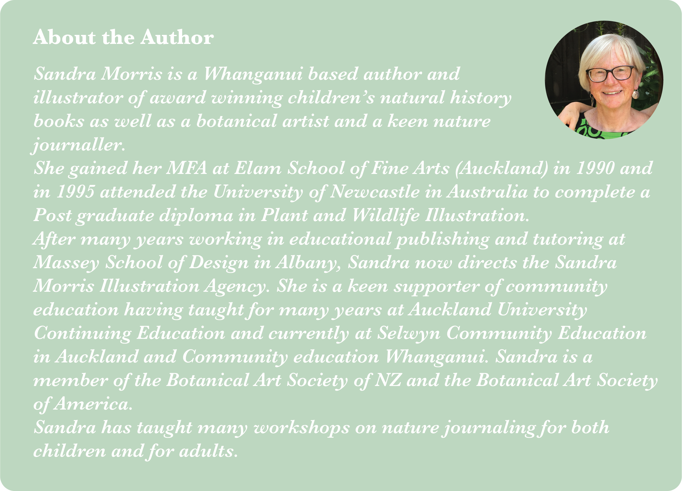 Find a copy of Sandra Morris’ beautifully illustrated book here - Welcome to News Zealand: A Nature Journal. Learn more about Sandra and her publishing work through her website www.illustration.co.nz. You can also find her on Instagram and Facebook.